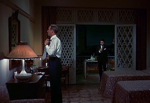 Ben McKenna and Louis Bernard stand at opposite sides of a distorted mirror. While Ben is bland, uninteresting and generally predictable, the Frenchman represents all that is dapper, charming and intriguing. Notice their positions in this still. While Ben fixes his boring tie and boring suit, Bernard leans jauntily and presumably sips brandy. The mirror could not be murkier.